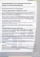 Fulfils the requirements of a modern, very economical book binding material. In addition it is surprisingly similar to real leather. This material can be embossed in different styles: calf-neck-ring embossing, Cabretta-fine hair cell embossing, Kid-very fine hair cell embossing, cattle embossing [flat], Toro-medium fine cattle grain as well as cattle shrunk-grain. Please ask for our full range of available colours.